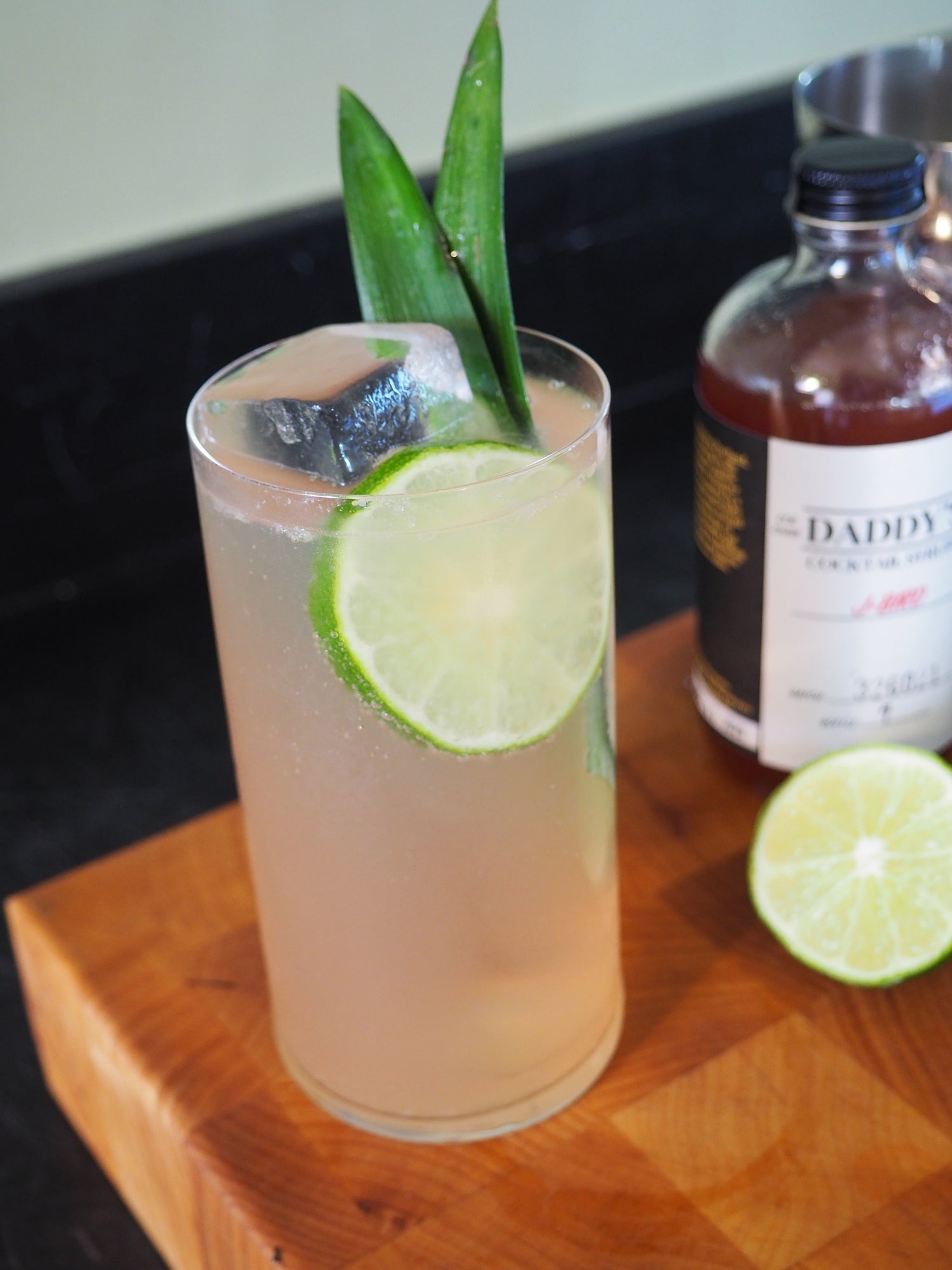 Add everything to a tall collins glass, give it a quick stir, add ice and gulp!